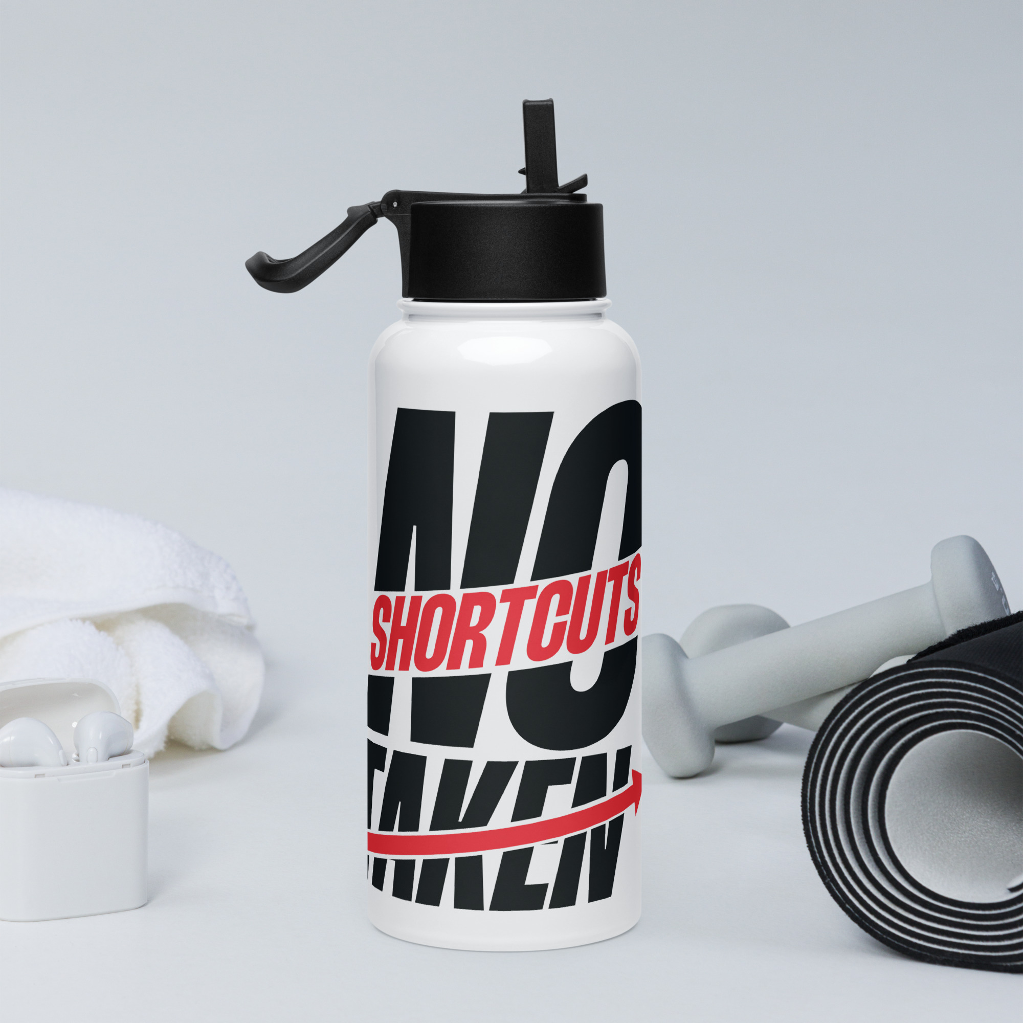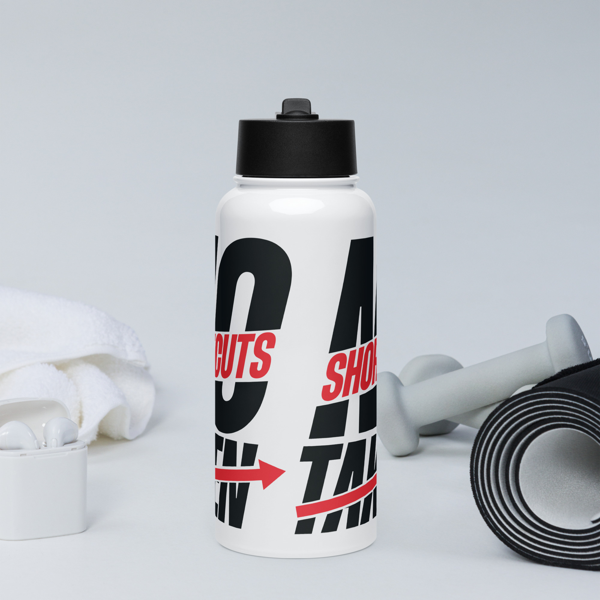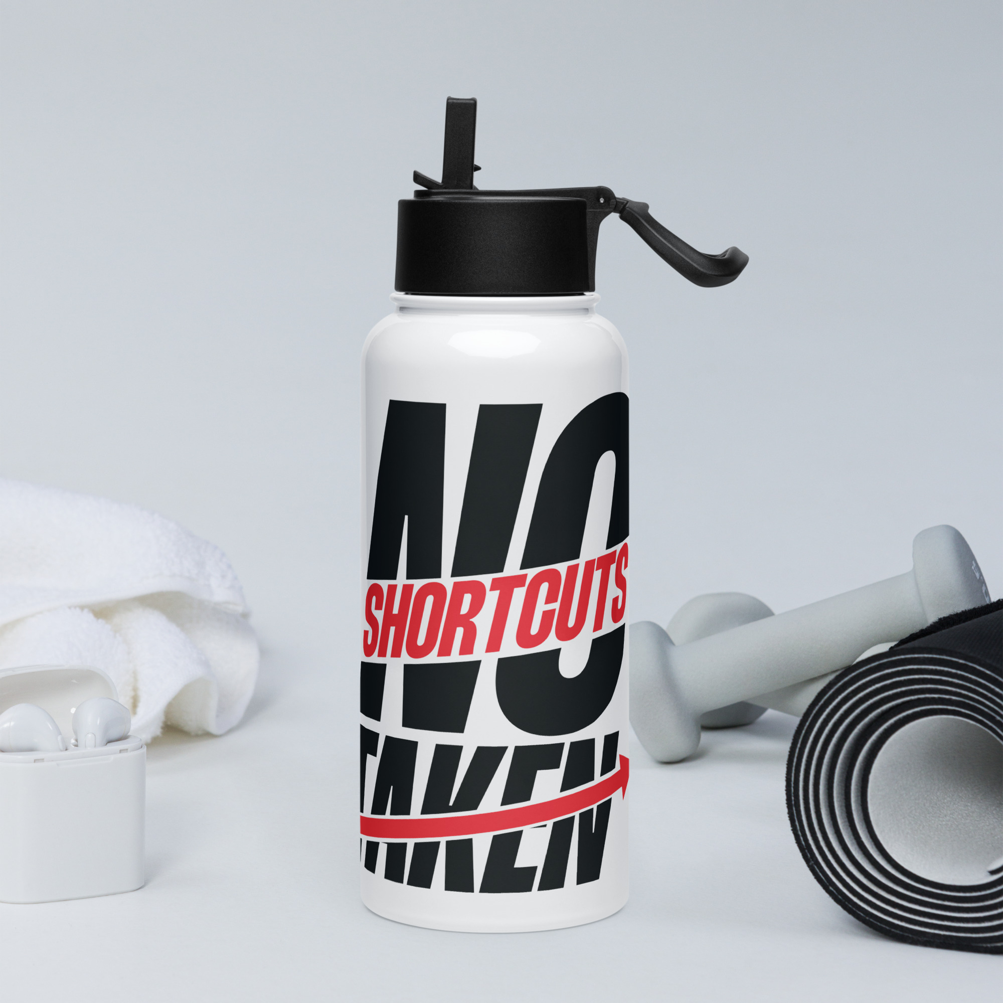 Black Red and White No Shortcuts Taken water bottle as a reminder of your dedication and hard work you’ve put in to achieve your level of skill.